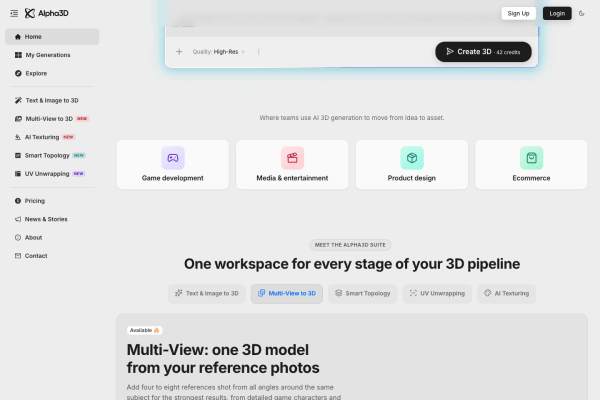 Alpha3D helps teams turn reference images and product ideas into lightweight 3D models suited to e-commerce, AR previews, and interactive product experiences.