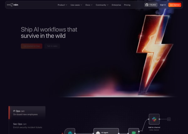n8n is a freemium business AI tool by n8n. n8n is a powerful open-source automation platform that connects apps and services through a visual node-based interface. It supports AI integrations with OpenAI, Anthropic, and Hugging Face, enabling teams to build intelligent automations, data pipelines, and AI-assisted workflows without writing code.