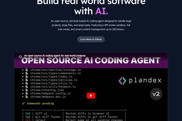 Plandex is an open source coding agent aimed at larger engineering tasks, helping developers plan work, edit across files, and iterate on substantial codebase changes with more structure.