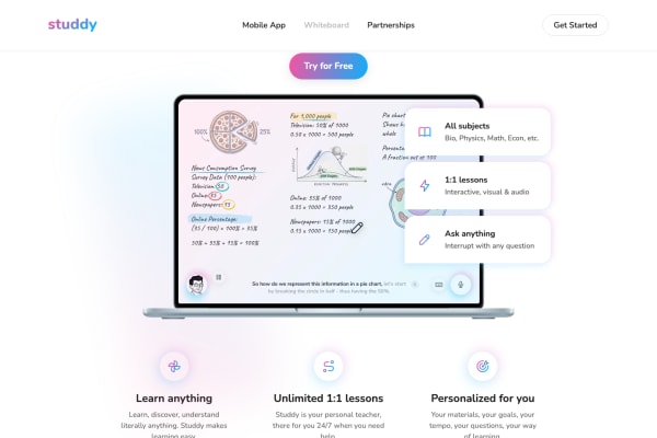 Studdy focuses on student-side learning help, offering tutoring-style explanations, guided problem solving, and homework assistance designed for faster understanding rather than just answers.