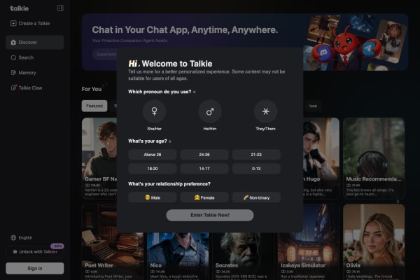 Talkie is a freemium nsfw AI tool by Talkie. Talkie is a mobile-friendly character chat platform with a large community of creator-made personas, making it useful for immersive roleplay, fandom interaction, and companion-style chat.